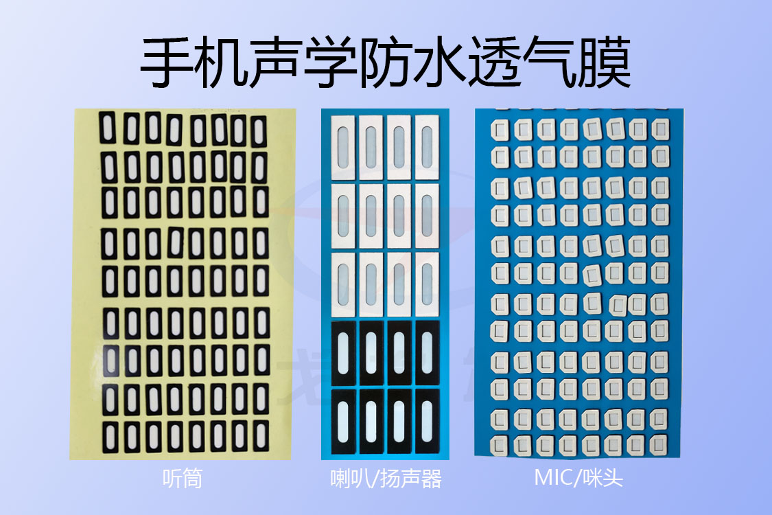 (喇叭聲學(xué)防水透氣膜、聽(tīng)筒聲學(xué)防水透氣膜、咪頭聲學(xué)防水透氣膜)等方式,來(lái)做好聲學(xué)器件透聲阻水這一特殊要求。與采用硅膠、